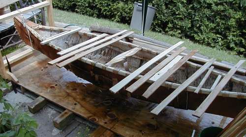 on.The next step is to put in the sheathing and ribs. This job took me a whole