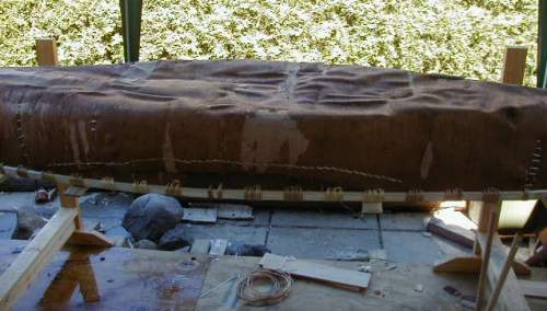 of the canoe until everything met in the middle. When a piece of sheathing ran