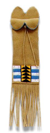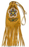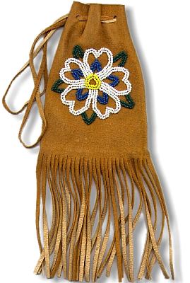 This is a tobacco bag made of split moosehide and beaded with lazy stitch.
