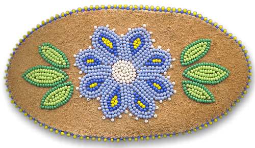 This barrette is also made on smoked moosehide with size 13 beads. It