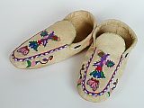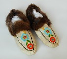 ![]() | These lovely Cree moccasins are both embroidered and beaded, on the vamps and the sides. They are made of home-tanned hide and are another ebay find. |