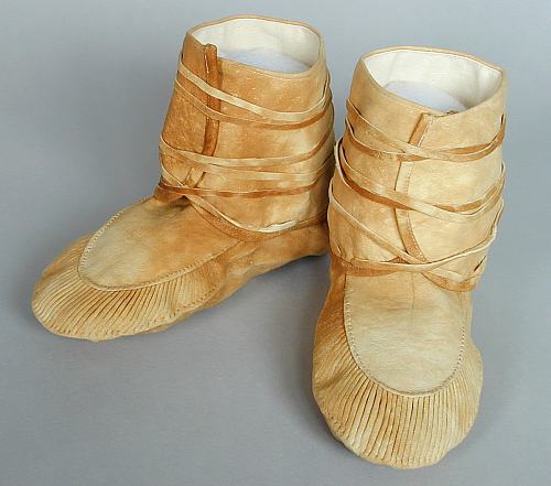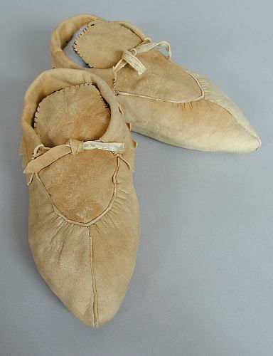 ![]() | I love this old style of moccasins. These are made of very soft home-tanned deerskin and the person who sold them to me said they came from the estate of a man who lived and traded with the Chippewa (Ojibwe) people in northern Minnesota from the turn of the century to the 1950's. |