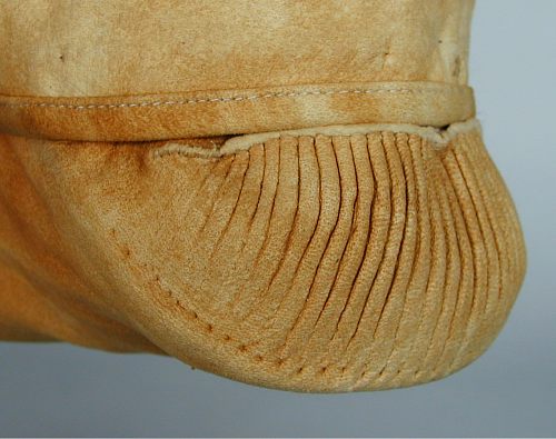 ![]() | This is a beautifully made pair of Innu smoked caribou moccasins from Davis Inlet, Labrador. The sewing on these is amazing and the way the heel is made is very interesting - see a detail of the heel. |