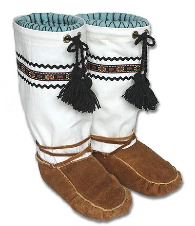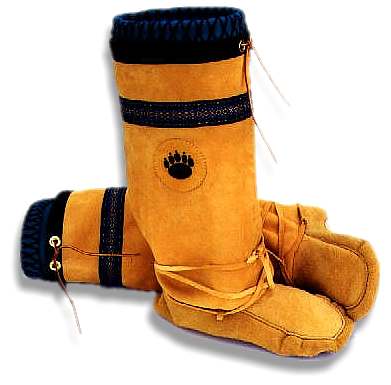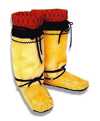 ![]() | Mukluk # 49 Traditional mukluks in a women's size 7 to 8 that are great for snowshoeing or wearing around the house. The bottoms are smoked moosehide and the tops are canvas with braid trim and wool ties. 100% wool duffle liners that are hand washable. Some of the warmest footwear you will ever wear. |