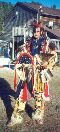 Keith (Littlebear) is a powwow dancer in Virginia. He wanted moccasins to complete his regalia. These mocs have fully beaded vamps and fringes around the ankles. See a photo of Keith at a powwow in North Carolina (32K) |