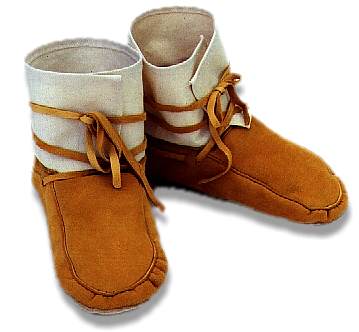 Rod in Aylmer, Quebec, builds canoes and wanted a plain pair of moccasins for work and paddling. They are made of deerhide with canvas ankle flaps. |